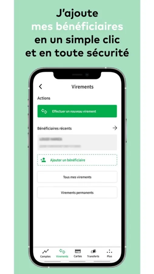 Avec Bank-e, vous avez accès en temps réel à un ensemble de fonctionnalités relatives à vos comptes bancaires et vos cartes :