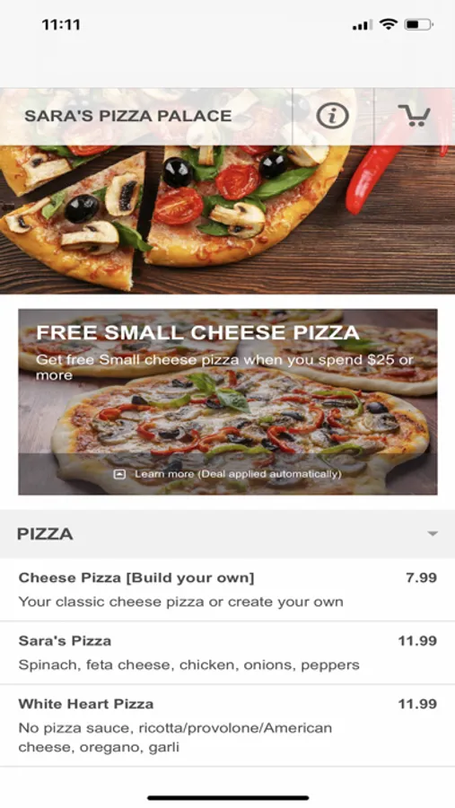 Use the Sara's Pizza Palace app to browse all the available items at Sara's Pizza Palace, select and add them to cart, and purchase online for a home delivery!