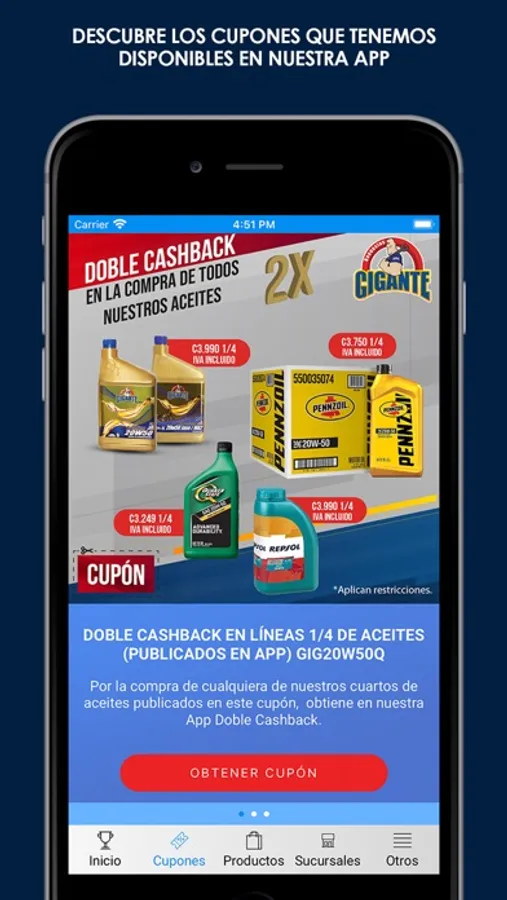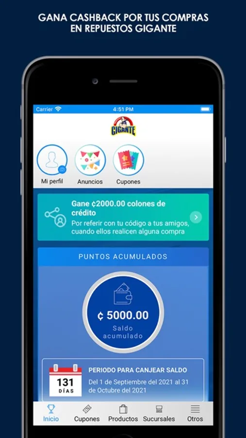 APP Repuestos Gigante es una herramienta de comunicación directa con todos nuestros puntos de venta por medio de whatsapp, evitando centrales telefónicas, además, le brinda la oportunidad de administrar su billetera por medio de nuestros Programa Cashback Gigante, en la App Repuestos Gigante también podrá encontrar nuestra información de horarios y ubicaciones de Puntos de Venta. También nos lleva mes a mes a disfrutar de promociones y presentaciones de novedades y nuevos productos. Repuestos Gigante no se detiene y ésta APP permite a nuestros clientes generar comunicación y fidelidad mejorando nuestros compromiso con el consumidor.