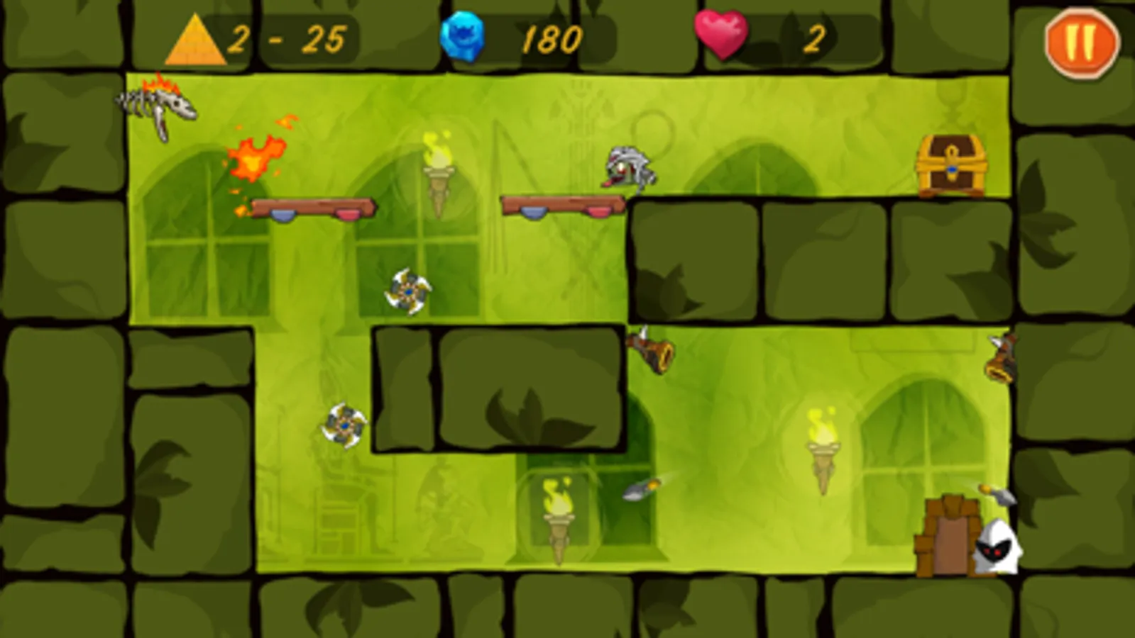 There are 90 challenging levels with a lot of traps and enemies.