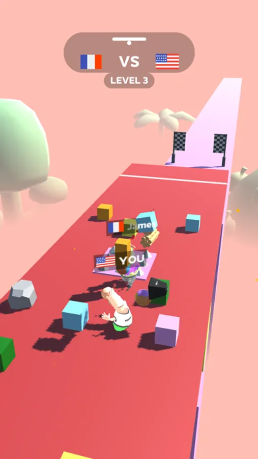 Collect the items. Stack it on your side and crash the seesaw on your side.