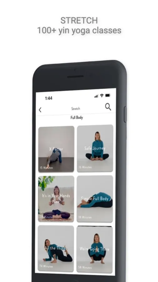 STRETCH. Over 100 yin yoga classes are available with a paid subscription. Relieve stress, calm the mind, and open up the body. Choose from 10, 20, or 30-minute options.