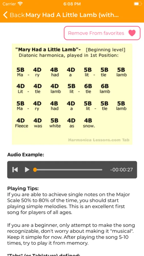 From Dave Gage of HarmonicaLessons! This is a collection of song tabs (easy note notation for harmonica) for all levels, from absolute beginners to more advanced players. Includes easy-to-understand explanations to get started for beginners of all ages. Learn 90 songs at home or on the go. This self-contained app includes 90 classic songs with audio examples. There are no 3rd party ads within this app.