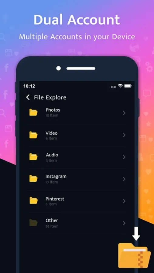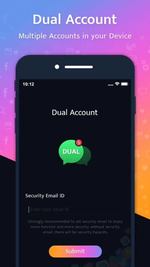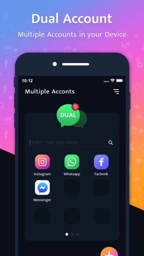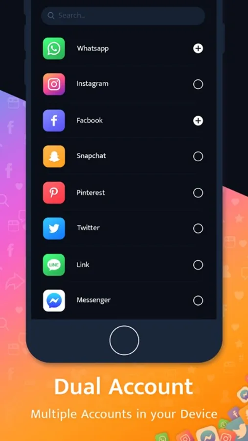 Dual Space Multiple Account in one device. If you are actively using 5 or 10 social media like Facebook, LinkedIn, Twitter, Instagram, Google+, Pinterest etc, then you need to install individual apps for each social media in your mobile device.