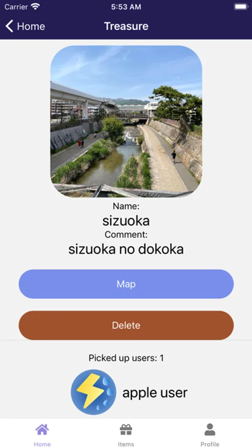 他のユーザーが設置した宝箱に接近するとスマートフォンに宝箱を発見した事が通知されます。宝箱を取得することを選ぶと自分のアイテムリストにそれが追加されます。取得した宝箱はいつでも見返すことができます。