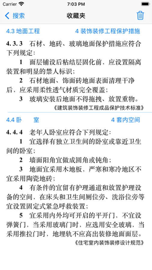 家装、工装常用设计、施工与验收的相关规范、标准的条文查询。