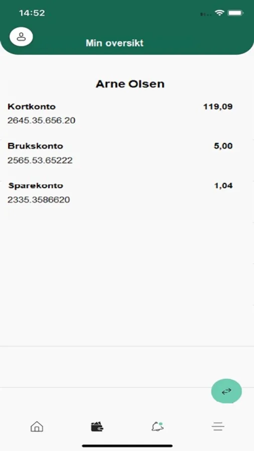 - Du ser alle konti, også fra kontoer du måtte ha hos andre banker
