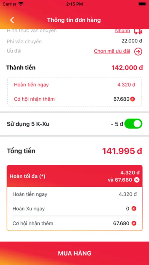 9. Xem thông tin hoàn tiền tại "Ví hoàn tiền".