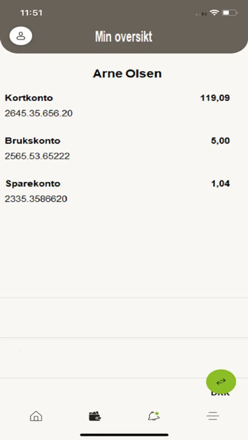 - Du ser alle konti, også fra kontoer du måtte ha hos andre banker