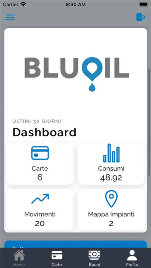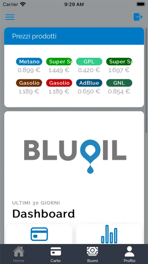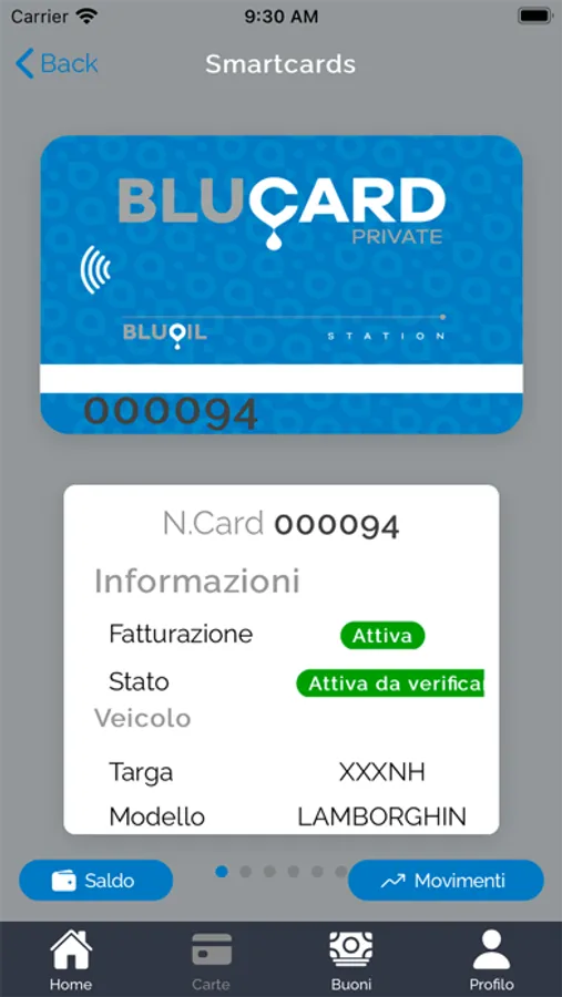Applicazione dedicata ai titolati di carta BluOil.