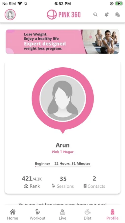 Users can register as the Pink Fitness Center member to use the exclusive functionalities of the App. For non registered members they can only avail the exclusive features within trail period.