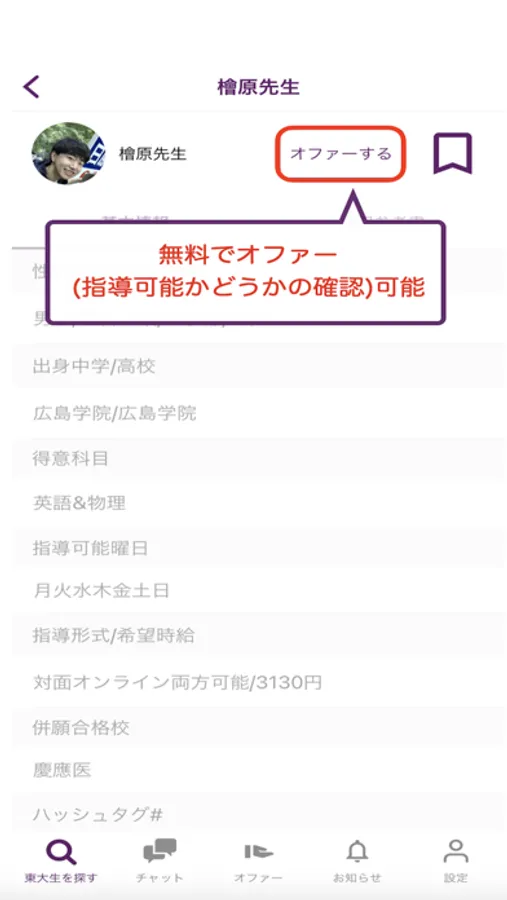 ※会員登録やオファーにお金はかかりません。一定以上チャット機能を利用するのに料金がかかりますが、個人契約後の中抜きは一切ございません!!