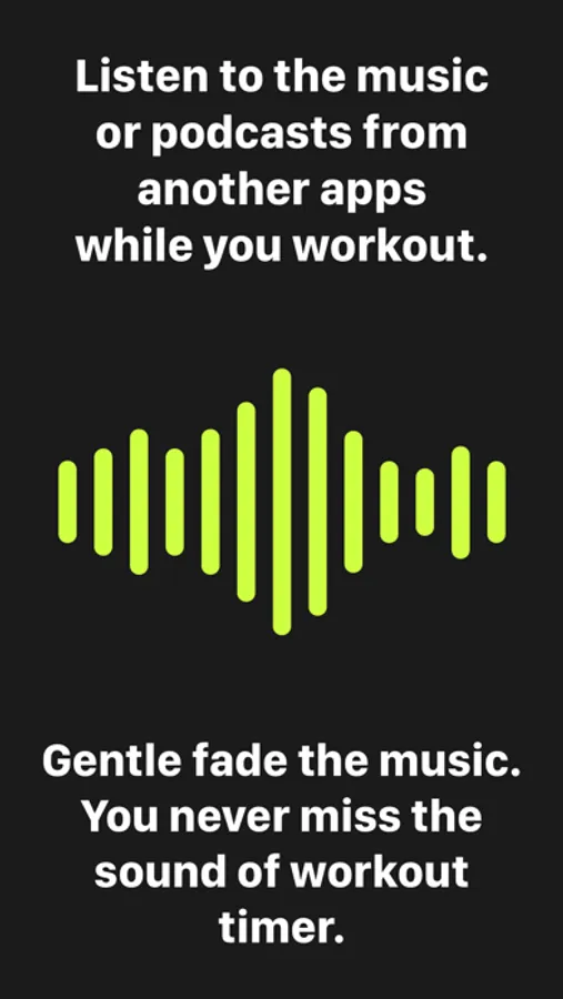 Listen to the music or podcasts from another apps while you workout. Gentle fade the music so that you never miss the sound of workout timer.