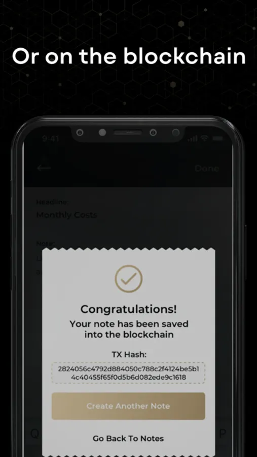 Using G999's latest double-encryption technology, our tool allows the storage of private notes either locally or permanently secured on the blockchain giving the users the extra level of security they need.