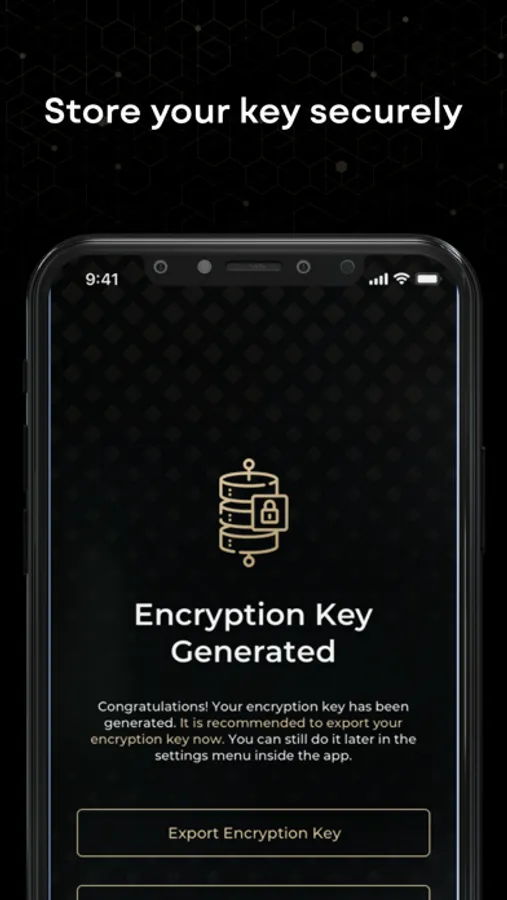 By exporting your unique encryption key to a secure location you can make sure you will always have full control over your private information.