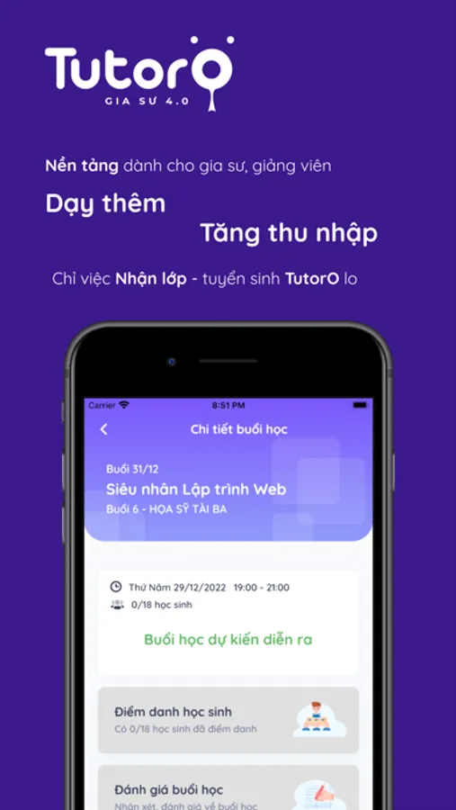- ĐƯỢC HỖ TRỢ 24/7 Giảng viên chỉ việc dạy, TutorO có sẵn đội ngũ hỗ trợ, chăm sóc phụ huynh, dịch vụ khách hàng.