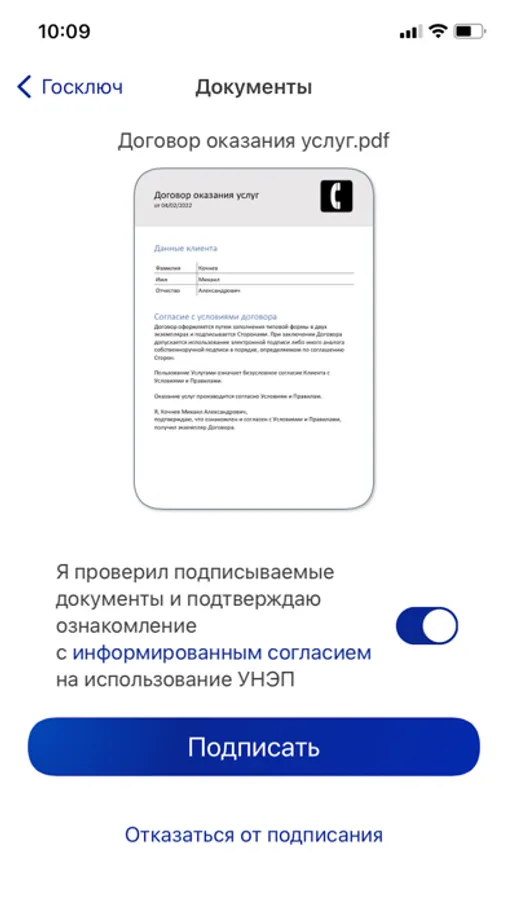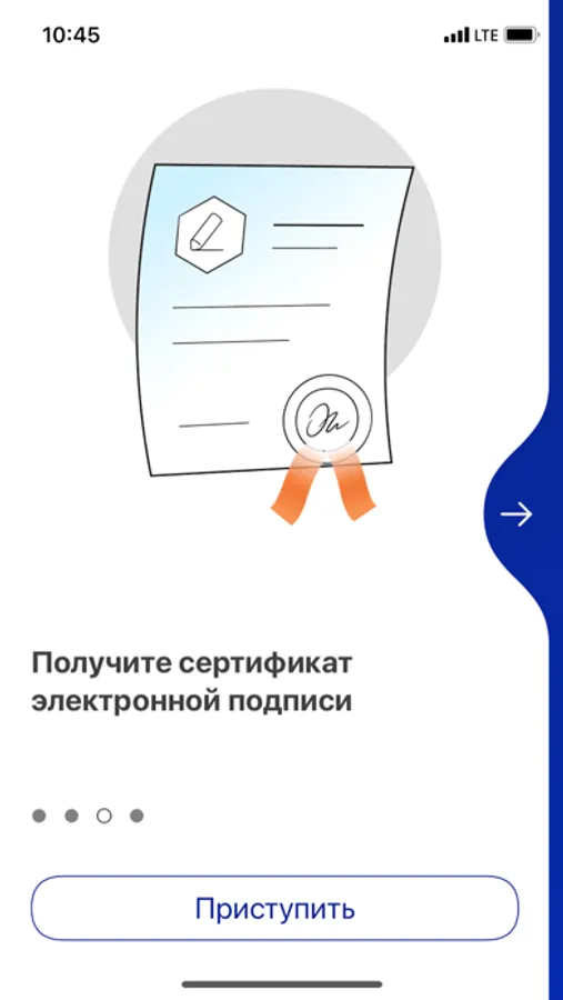 Для старта получения квалифицированного сертификата в приложении необходимо, чтобы в приложение был направлен документ для подписания соответствующим видом подписи.