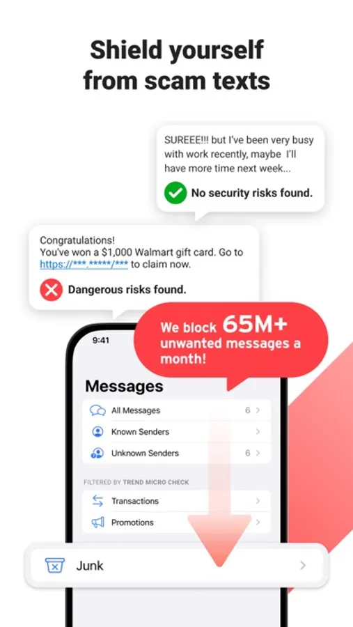 Powered by the world’s largest spam and scam text database, Trend Micro Check filters spam messages, identifies and blocks spam calls and protects the privacy of your phone number. It’s 100% free!