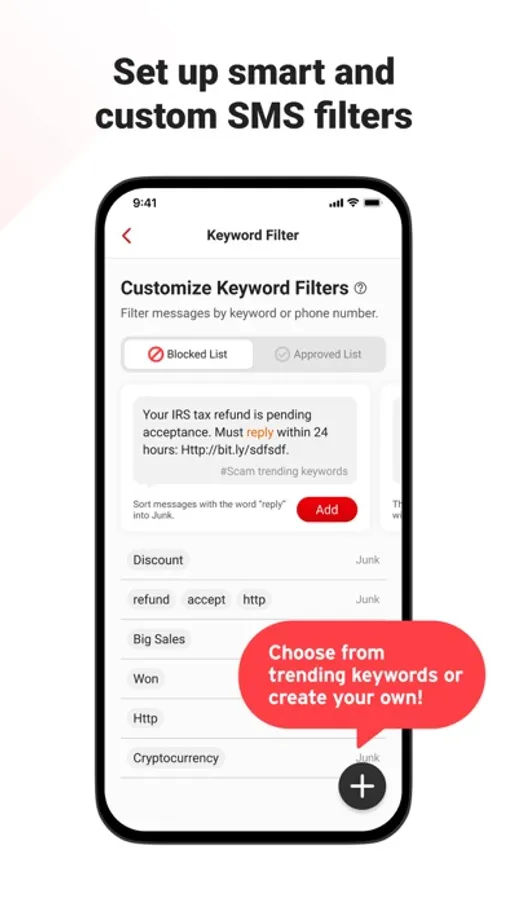 - Set it as your SMS Filtering to automatically filter and block text messages