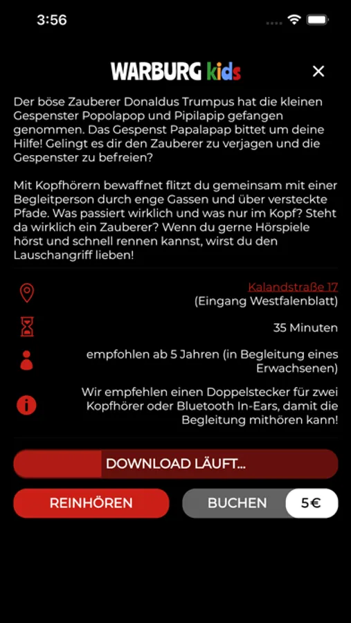 Mit Kopfhörern bewaffnet flitzt du als Geheimagent*in durch enge Gassen und über versteckte Pfade der historischen Stadt Arnsberg oder Warburg. Gehwege werden zum Schauplatz für Verfolgungsjagden, Kirchtürme zu Geheimverstecken, Finanzämter zu Zentralen mächtiger Großkonzerne. Was passiert wirklich und was nur im Kopf? Ist da jemand hinter dir her? Und sind das etwa Schüsse?