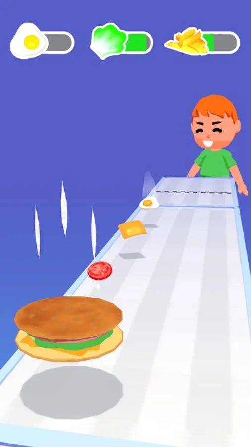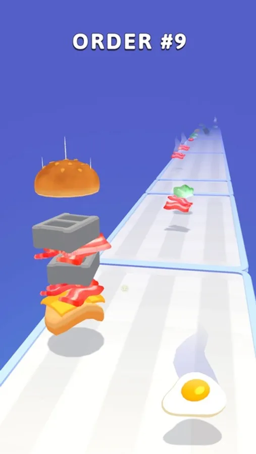 Swipe your finger to change burger's lane and collect the right toppings. Can you build the biggest and tastiest burger in the world?