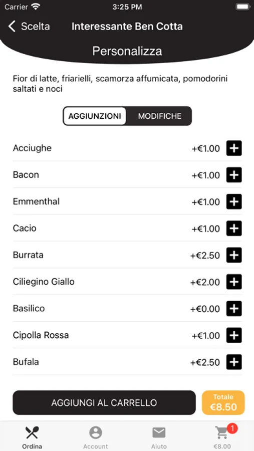 * Aggiungi facilmente gli ingredienti che preferisci per ogni prodotto
