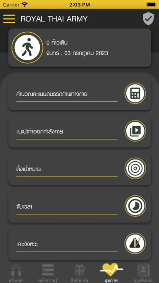แอพพลิเคชัน S.M.A.R.T. SOLDIERS มีการเชื่อมต่อกับแอป Health ของ Apple เพื่อนำข้อมูลจำนวนก้าวเดินของผู้ใช้มาแสดงผลบน Dashboard ในฟีเจอร์ Fitness
