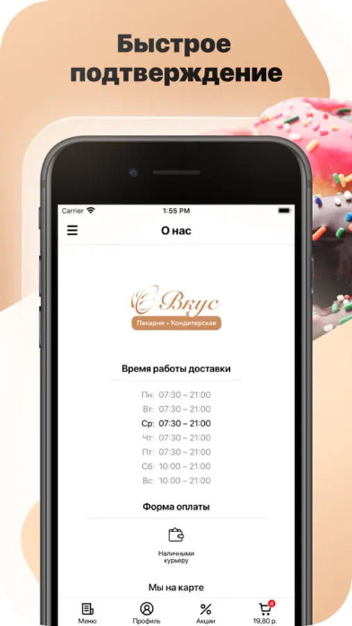 — Быстрый заказ с мгновенным подтверждением через приложение.