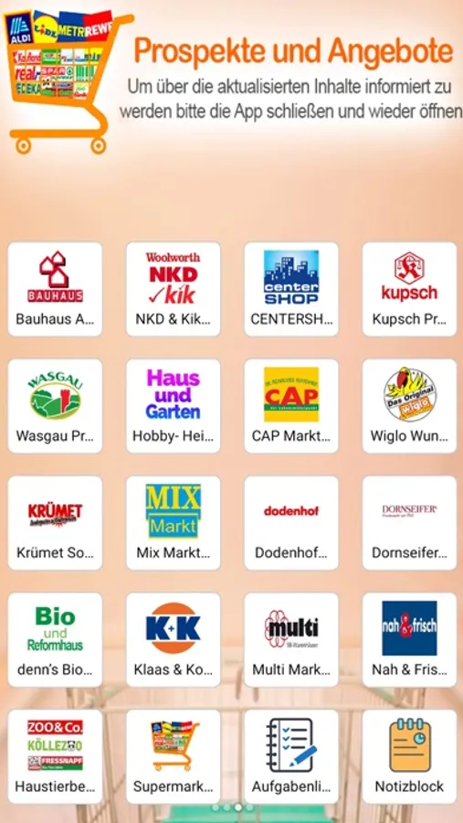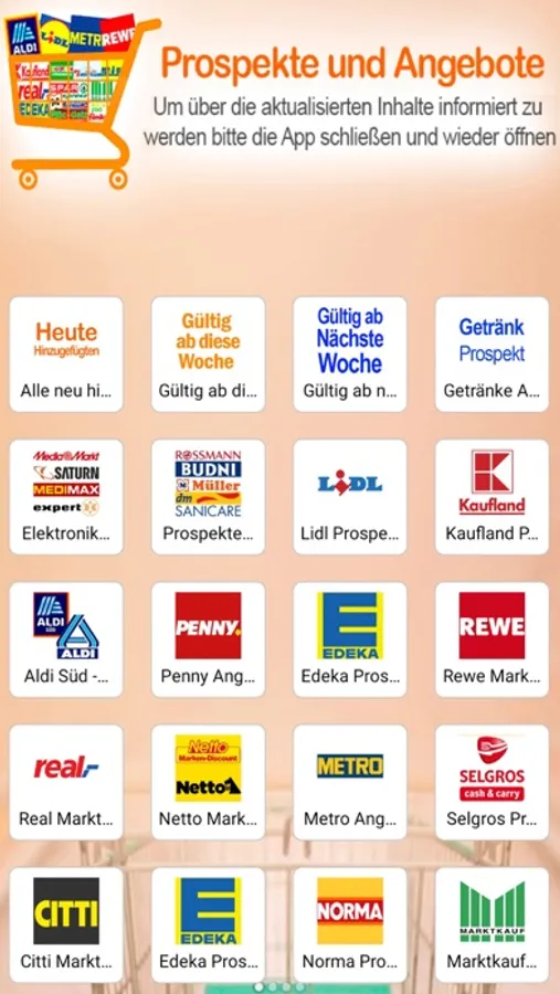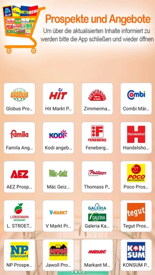 Sollte es Supermärkte geben, die nicht möchten, dass ihre Kataloge oder Broschüren veröffentlicht werden, dann können Sie uns darüber informieren, damit wir die Broschüren und Kataloge des jeweiligen Supermarktes unverzüglich von der Anwendung entfernen.