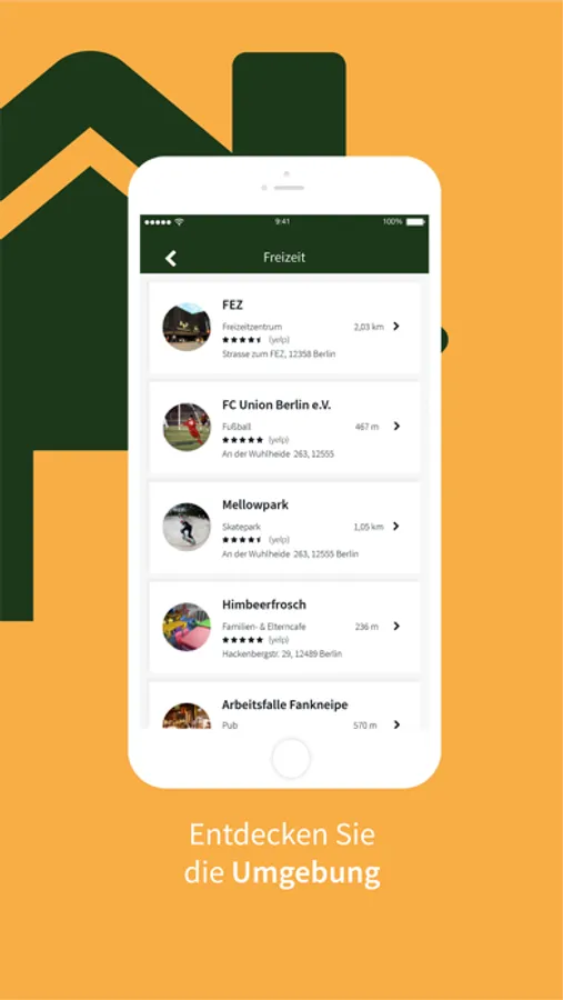 Informieren Sie sich z.B. über Geschäfte, Ärzte, Erstatten und über die Öffnungszeiten in Ihrer unmittelbarer Umgebung.