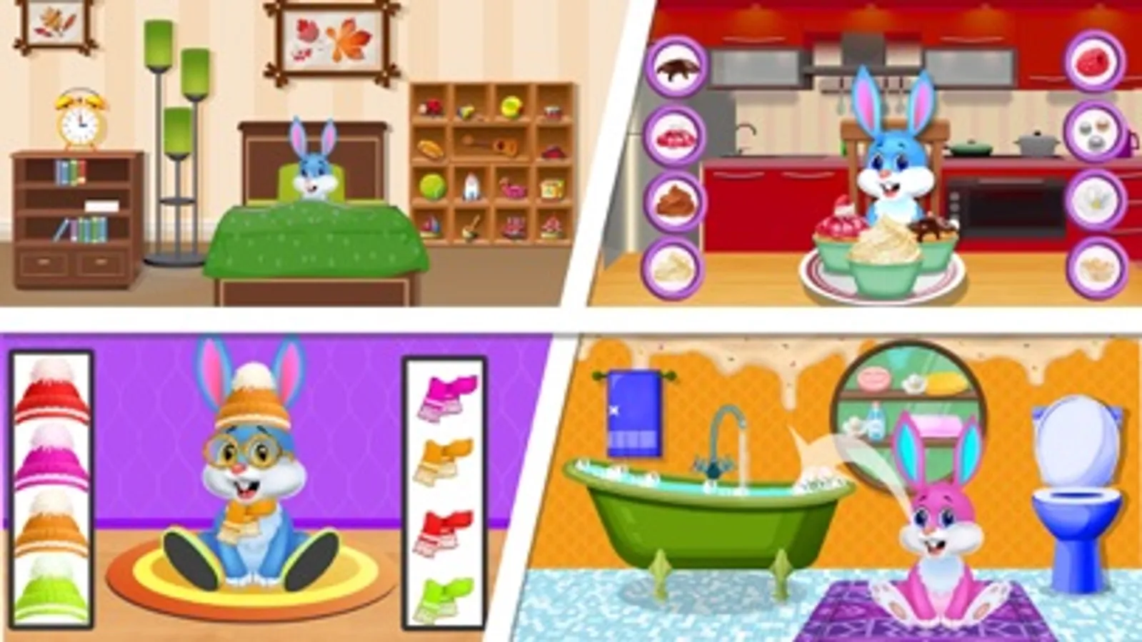 Adopt the cute bunny friend and help her to grow up, taking care of her, dress her up, decorate her sweet house, painting animals, cooks delicious food, and make her the cutest in bunny games. Style up your cute bunny friend and perform multiple activities & games to keep your pet busy. In house decorating bunny game you will not get bored. So, let’s get into the fashion and home decorating game and give your cute baby bunny the best look & perform different tasks to clean the house. The bunny rabbit games will not fail to make you feel enjoyable in her dream home.
