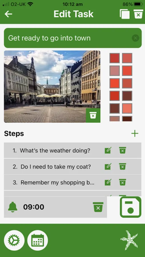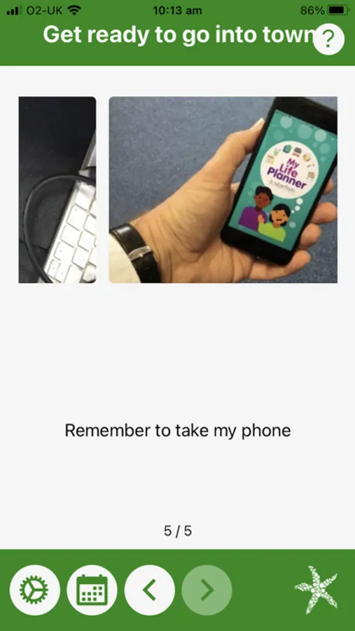 MyLifePlanner allows you to create events which can be broken down into step-by-step guides to tasks using words and pictures that you can take on the device and that will be familiar to the user. For example, you might create reminders about how to make breakfast or a cup of tea, or more complex tasks. You could create reminders about a route to the shops – which bus to catch, or landmarks along the way if they are walking.
