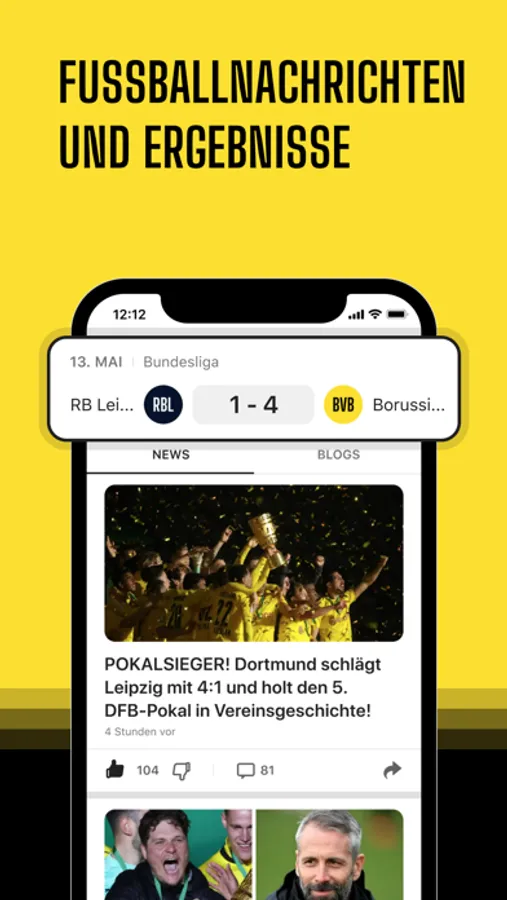 Unsere Fußball-App wird von Dortmund-Fans für andere Anhänger des BVB entwickelt und unterstützt. Diese ist nicht offiziell und wird nicht vom Club erstellt oder unterstützt und steht in keiner anderen Beziehung zum Club. Bleibe mit uns, denn wir entwickeln ständig weitere Funktionen für dich.