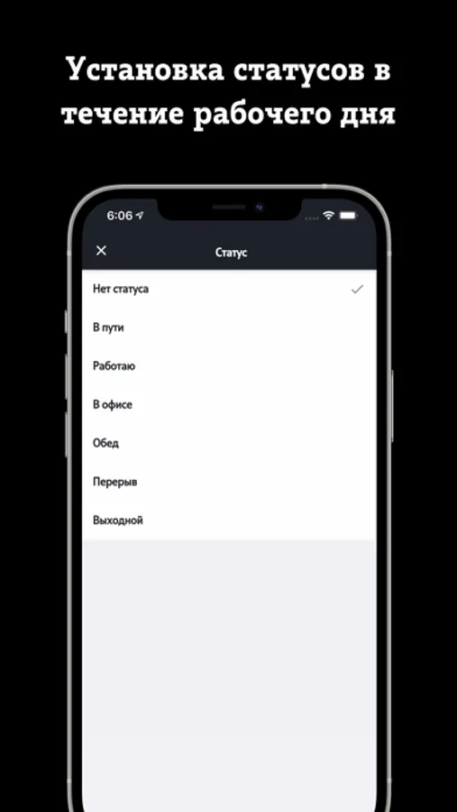 • устанавливать актуальный статус (например, «В пути», «Работаю»);