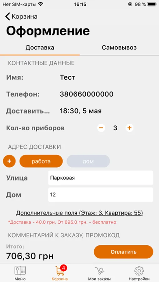 • встановити бажаний час доставки замовлення за вказаною адресою;