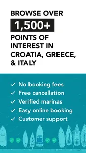 Browse over 800 marinas and nearly 1,000 unique points of interest across the Mediterranean Sea. Search by marina name, city, or country with just one tap. Filter by type of berthing, and list through all the options on an interactive sailing map. Check the amenities, location, opening hours, reviews, and other useful marina information directly in the app.