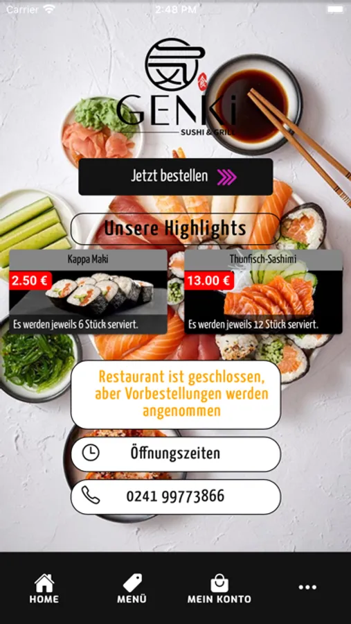 Herzlich Willkomen bei Genki 101 in Aachen. Wir bedienen unsere Kunden mit Sushi & Asia Küche Speisen und machen das seit mehreren Jahren aus Leidenschaft. Wir freuen uns immer wieder neue Kunden unsere Herkunft näher zubringen und möchten ihnen die Möglichkeit geben, ihre Bestellung unkompliziert und total einfach abzugeben. Aus diesem Grund, möchte wir ihnen unsere neue App und unseren Online Shop vorstellen, mit dem Sie problemlos über Paypal, Bar und Kreditkarte zahlen können.