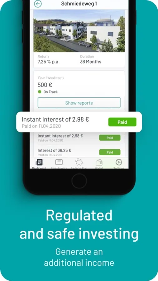 4. your investment pays off. Receive regular updates on the project during the term. Your invested capital and interest will be credited to your investor wallet.