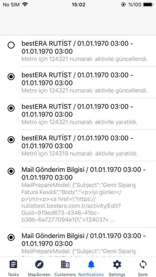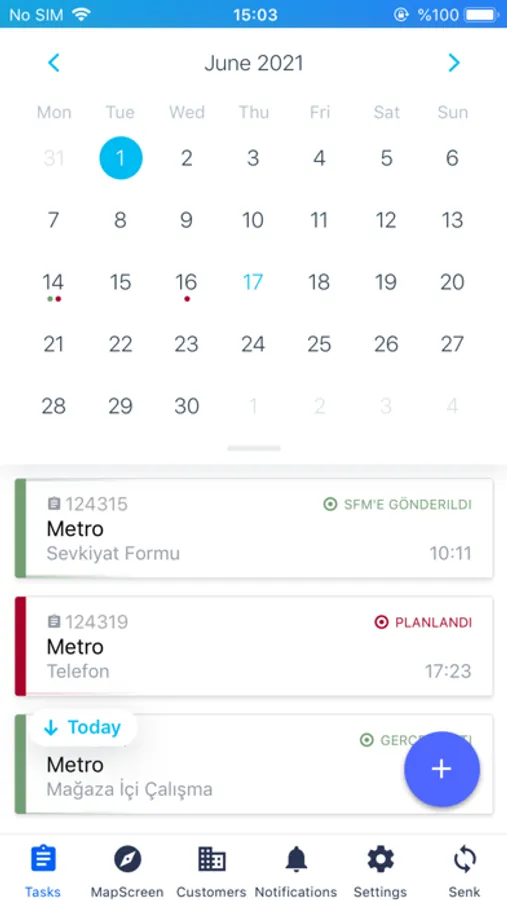 Harita tabanli müsteri lokasyonlarini kullanarak atanilan görevler ekip üyesi tarafindan mobil cihazda görüntülenir.