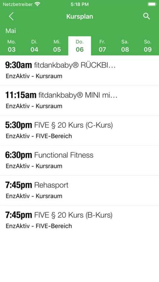 Yoga, Step oder Indoor Cycling – Du hast Lust auf Bewegung, weißt aber nicht, welche Kurse heute im Programm sind? Dafür hast Du nun die EnzAktiv Studio-App. Habe die aktuelle Gruppenkurspläne stets griffbereit und mache spontan mit oder plane, welche Kurse am besten in Deine persönlichen Zeitplan passen. Du weißt nicht, was hinter den Kursnamen steckt? Keine Sorge, neben Details wie Zeit und Ort des Kurses, kannst Du auch Kurzbeschreibungen einsehen, Dich dann für Deine Lieblingskurse entscheiden und sie auch gleich vom Handy aus buchen.