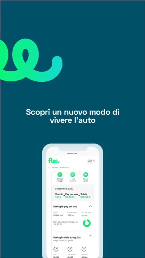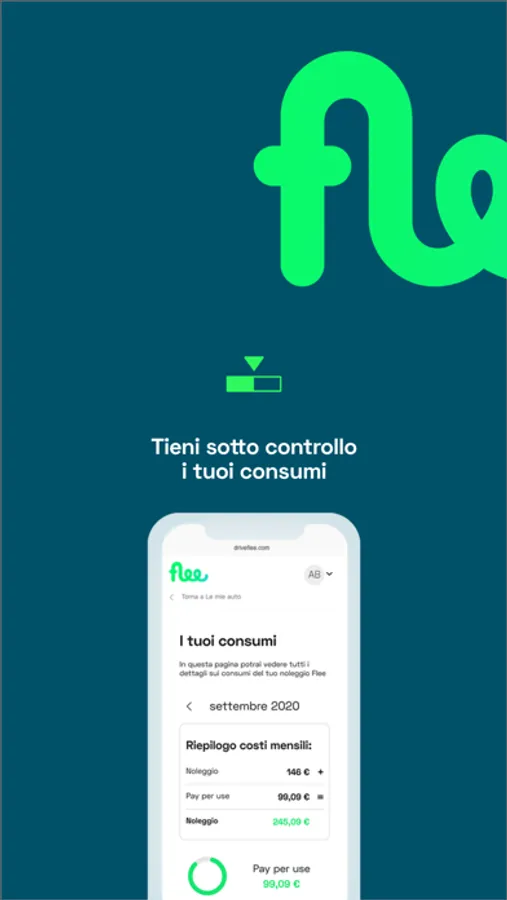 Da app controlli i costi del tuo noleggio e hai la visibilità dell’utilizzo della tua auto Flee.