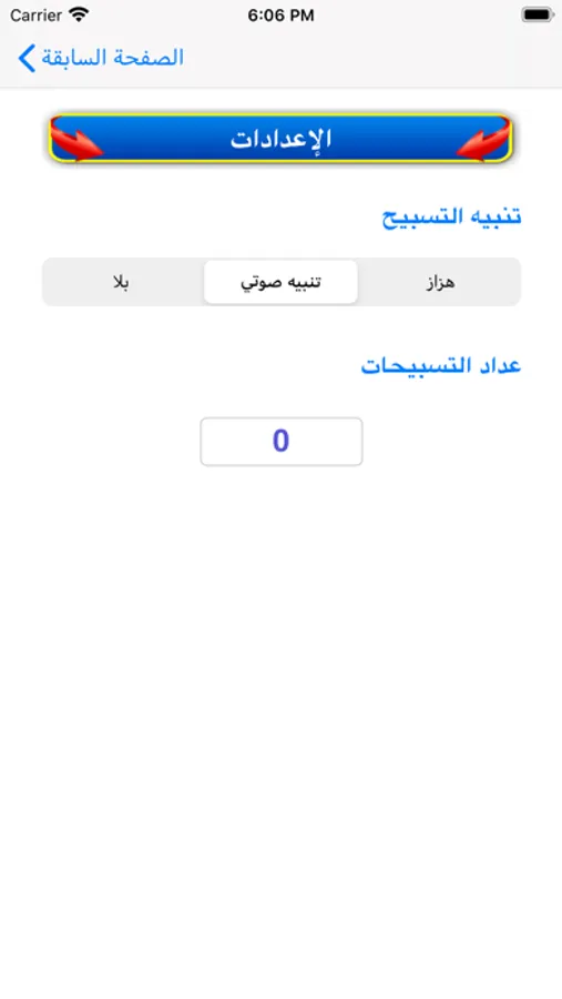 يمكن تفعيل خاصية التنبيه الصوتي أو الهزاز أثناء التسبيح
