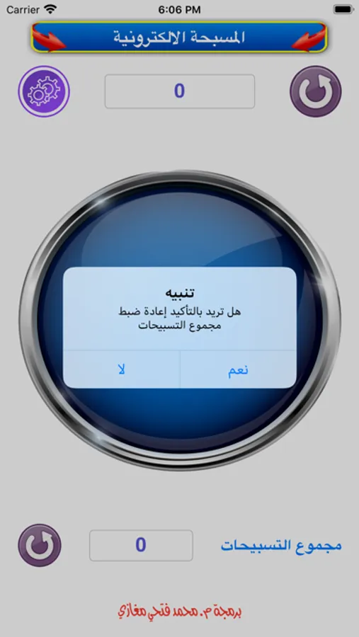 تم إضافة عداد أيضاً لحساب عدد التسبيحات المتكررة