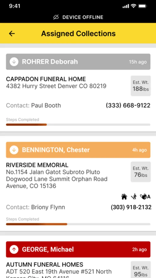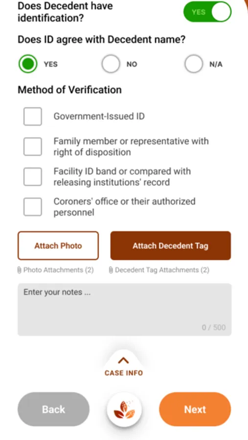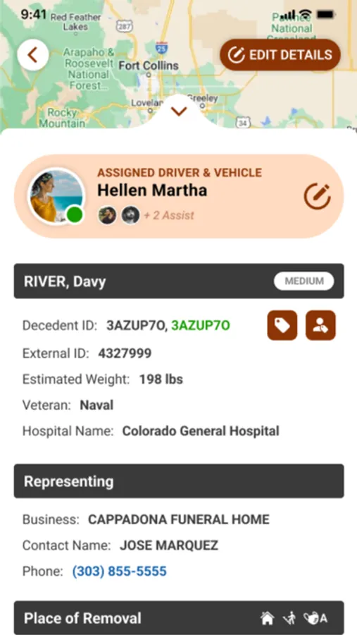 From the first entry of case information, contracted agents or employees can view and delegate case loads. Removal Tech's receive alerts for new assignments and dispatch is also updated with ETA's in real-time. Once "On-site” with the next of kin, removal tech can focus on the decedent. Quickly catalog personal belongings, verify required documentation and receive approval for elective procedures by allowing releasing parties to electronically sign documents sooner and when you have their full attention.