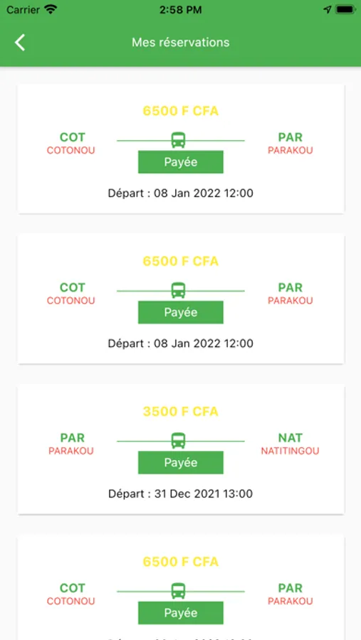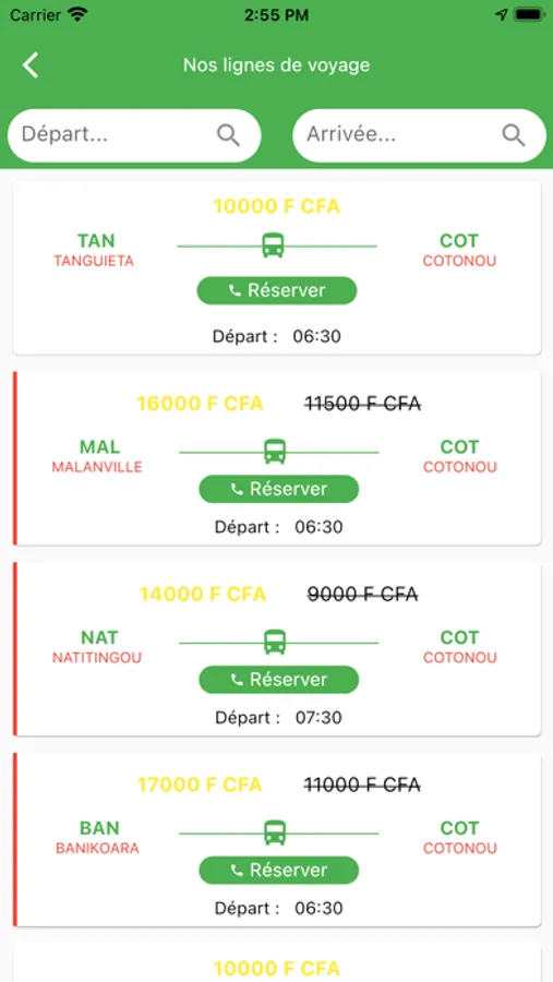- Consultation des lignes de voyages, pour chaque ligne préciser le tarif et les horaires de voyage