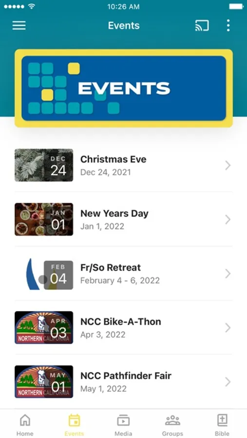 This app will help you get connected with the Northern California Conference of Seventh-day Adventists Youth Ministries Department. It will provide a calendar of events(including live broadcasts), resources, and content for youth and young adults.