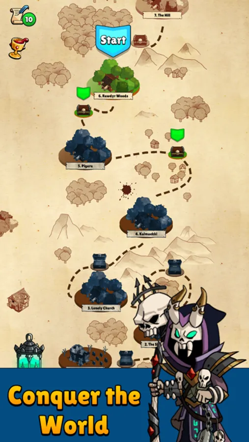 Idle Necromancer has beautiful HD Game Graphics and intuitive gaming controls. Your objective in the game is to build an army of minions, kill and destroy villages to search for power, and hire more recruits in your army.