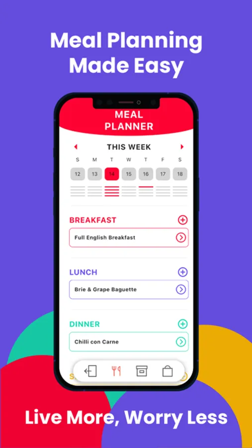 Easily create your meal plan for up to the next two weeks. You can plan all of your meals for the day – breakfast, lunch, dinner and even snacks – and can even include different meal options for your kids if they don’t fancy that special gourmet dish on Saturday!