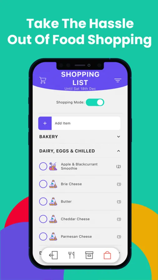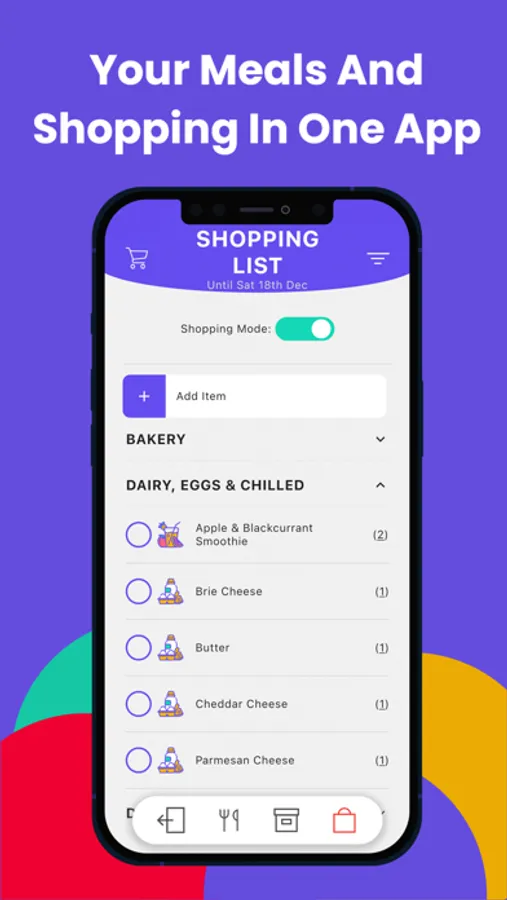 All of your shopping on one list: Some meal planning Apps only add food ingredients to the shopping list, with WhatsIn you can add any item – household goods, pet supplies, baby items etc – to your shopping list.