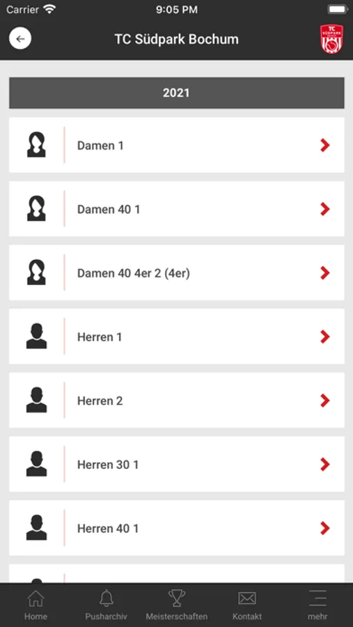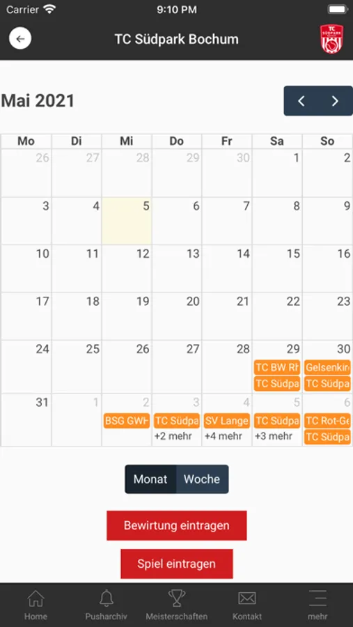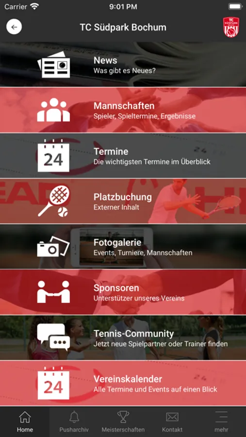 In der TC Südpark Bochum App findest Du folgende Informationen: